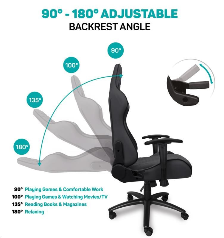 Vyniká luxusným spracovaním, moderným ergonomickým dizajnom a veľmi stabilnou konštrukciou. Mnohotvárne nastavenie vyhovie každej postave. Dizajn bol špeciálne navrhnutý pre dlhodobé sedenie a umožňuje aj bežnú prácu doma alebo v kancelárii. Ideálne pre mnohohodinové hranie bez kompromisov.