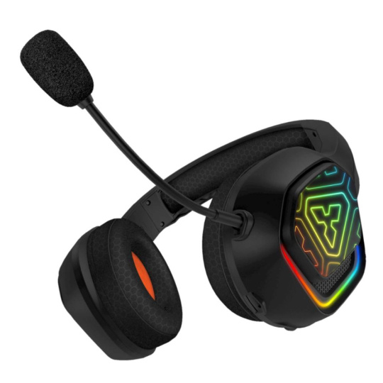 Profesionálne herné bezdrôtové slúchadlá s pripojením 2,4 GHz a BT "Biohazard Wireless" s odnímateľným mikrofónom a RGB Rainbow podsvietením pre hráčov počítačových hier.