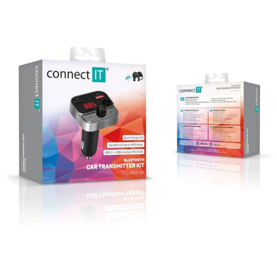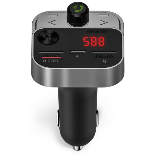 Bluetooth vysielač v kombinácii s trojportovou nabíjačkou je multimodálne zariadenie do vášho automobilu, vďaka ktorému môžete nielen nabíjať mobilné zariadenia, ale aj počúvať hudbu z USB flash disku alebo mobilného telefónu. Vysielač je vybavený digitálnym displejom a štyrmi ovládacími tlačidlami pre jednoduché a komfortné ovládanie všetkých funkcií. Samozrejmosťou tohoto zariadenia je aj možnosť bezdrôtového spárovania s vaším mobilným telefónom pre uskutočňovanie telefonátov. Na tento účel je vybavený aj zabudovaným mikrofónom.