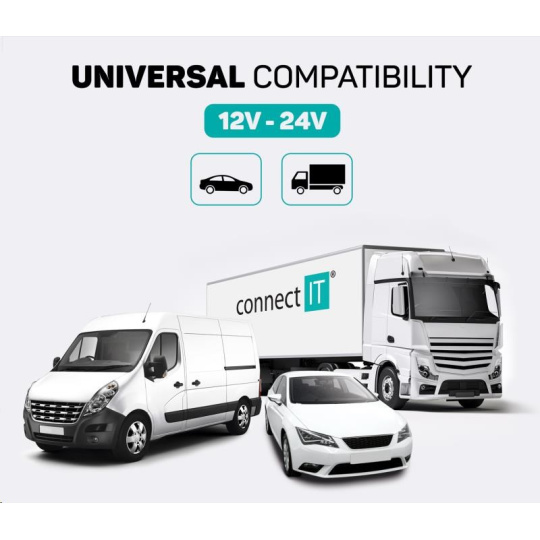 Vstupné napätie 12 - 24 V DC (vhodné aj pre zásuvky v kempingoch a nákladných autách)