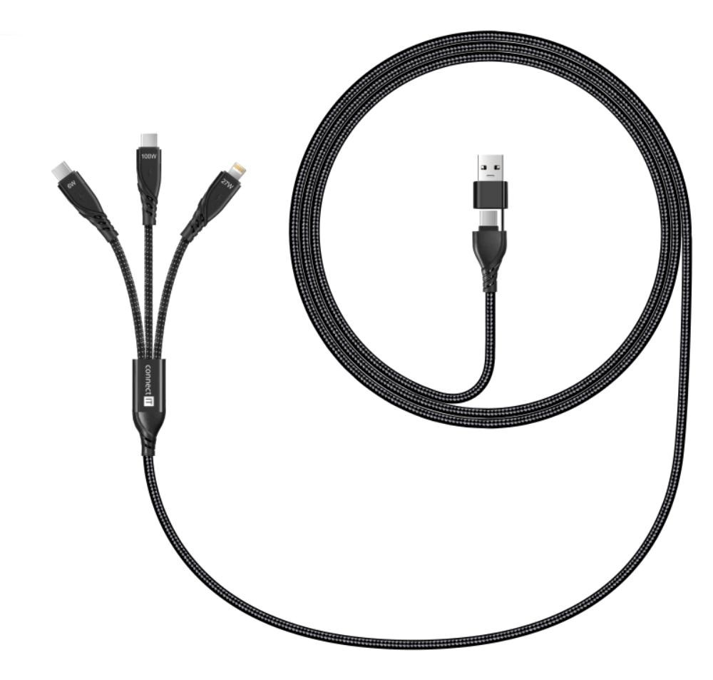 CONNECT IT Nabíjecí kabel Wirez 6v1, USB-C/USB, Lightning + 2x USB-C, 1.25m, černá