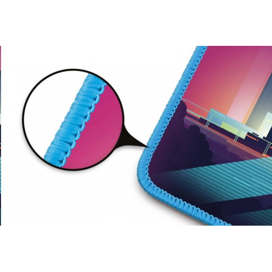 Podložka má mäkký, príjemný povrch s nadčasovou kybernetickou potlačou. Vďaka hracej ploche 320 x 245 mm vám nikdy nebude chýbať priestor na pohyb. Veľkou výhodou je pogumovaná protišmyková spodná strana a antistatický povrch, na ktorom bude bez problémov jazdiť každá myš. Materiál bol navrhnutý tak, aby odpudzoval vodu a nečistoty. Podložka má okraje obšité špeciálnou vysokokvalitnou svietiacou niťou, ktorá v tme jemne svieti.