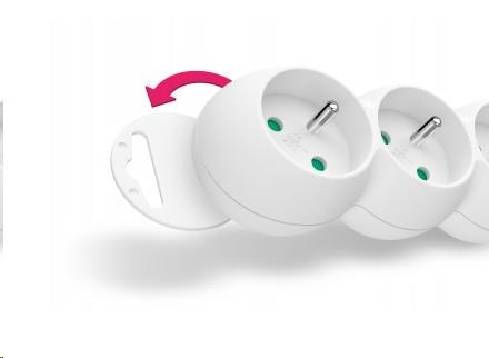 Vďaka otočeniu zásuviek o 45° je možné používať aj objemnejšie napájacie adaptéry alebo uhlové zástrčky. Výsuvná slučka v hornej časti zásuvkového modulu umožňuje zavesenie alebo pevnú inštaláciu na stenu (napr. v dielňach a garážach).