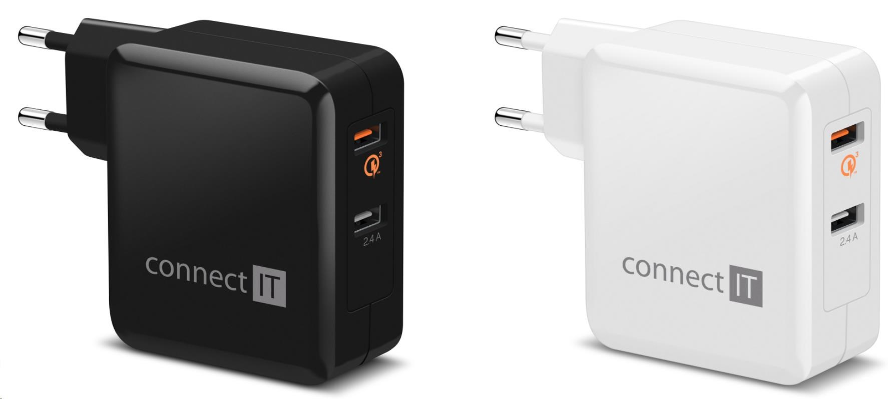 Cestovná nabíjačka USB s technológiou rýchleho nabíjania Qualcomm Quick Charge 3.0 určený na napájanie a nabíjanie mobilných telefónov, tabletov, akčných kamier, čítačiek elektronických kníh, MP3 prehrávačov, herných konzol a mnohých ďalších prenosných zariadení doma, v kancelárii aj na cestách.