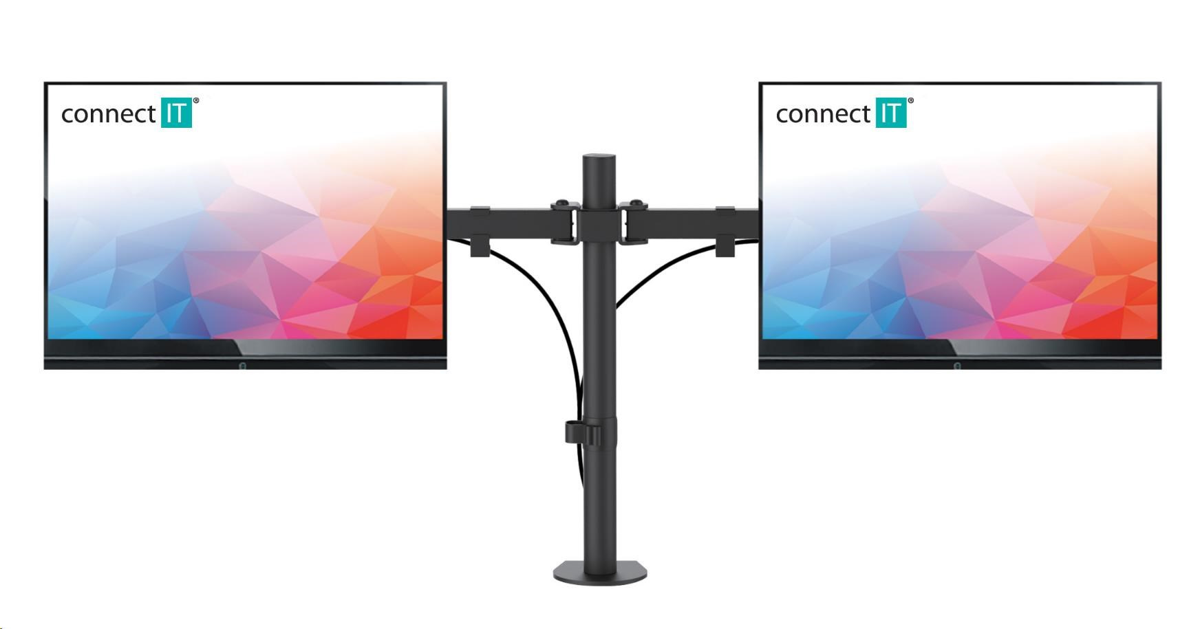 Stolný držiak CONNECT IT TwinArm pre 2 monitory, ČIERNY