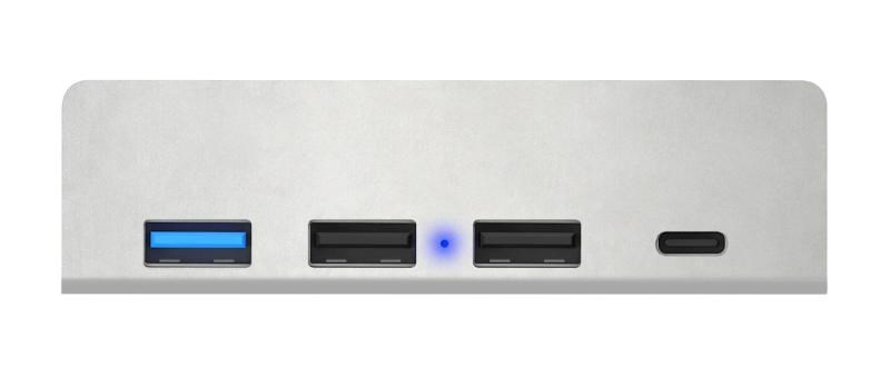 Prakticky tvarovaný USB-C/USB-A hub pre pripojenie až 4 periférií (USB-C, 1x USB-A 3.2 gen.1, 2x USB-A 2.0).