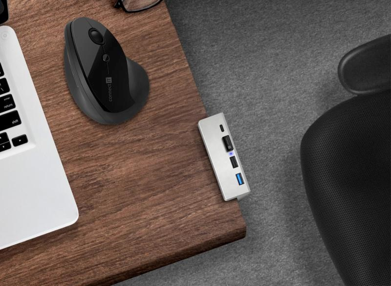 CONNECT IT USB Hub DeskHub, 1xUSB-C, 1xUSB 3.2, 2xUSB 2.0, stříbrná