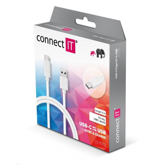 CONNECT IT Wirez USB-C (typ C) -> USB-A, USB 3.1 Gen 1, biela, 2 m