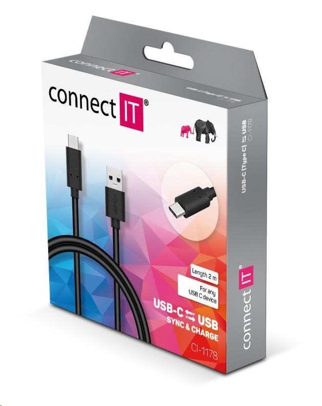 CONNECT IT Wirez USB-C (typ C) -> USB-A, USB 3.1 Gen 1, čierna, 2 m