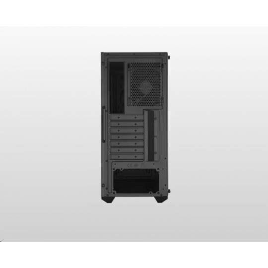 Základom nového MasterBoxu K501L je hranie hier. Osvetlený ventilátor na pozadí šikmého vetrania predného panelu vypovedá o jeho súťažnej stránke.
