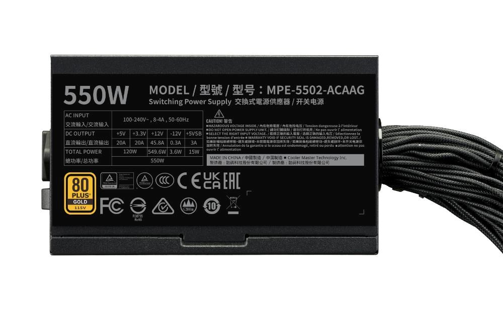 Cooler Master zdroj MWE Gold 550W V3, 120mm, 80+ Gold, ATX 3.1