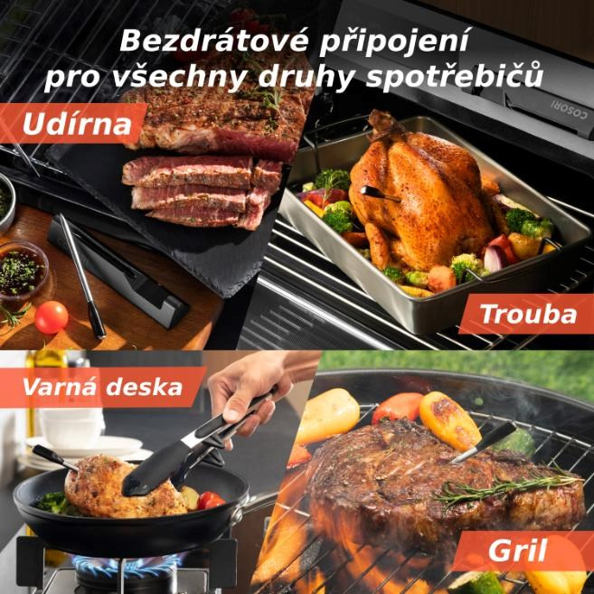 Inteligentný teplomer COSORI je navrhnutý tak, aby bol univerzálnym pomocníkom v každej kuchyni. Môžete ho používať s rôznymi kuchynskými spotrebičmi, ako sú domáce rúry, grily, udírne alebo pri varení na klasickom sporáku. Teplomer je ideálny pre každého, kto chce dosiahnuť perfektné výsledky bez ohľadu na zvolenú metódu varenia.