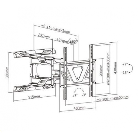 Špičkový nástenný držák s polohovaním TV 32-80", otočný, sklopný, výsuvný Nástenný držiak na televíziu, ktorý vyniká skvelou nastaviteľnosťou, výbornou konštrukciou a krásnym dizajnom. Vhodný je na všetky typy a značky televízií, ktorých hmotnosť nie je vyššia ako 45kg a ktoré podporujú VESA štandardy od 200x200 do 400x400. Unikátna konštrukcia držiaka umožňuje zasunutie televízie ku stene na vzdialenosť iba 41mm a maximálna vysunutie až na vzdialenosť 475mm. Otáčanie je možné na obe strany minimálne o 60°, náklon je pevných 15° nadol alebo 7° nahor. Držiak podporuje korekciu roviny obrazovky, konštrukcia je osadená krytmi pre vedenie káblov. Držiak Fiber Mounts Super-2 odporúčame aj náročným používateľom, vďaka svojej kvalite, dizajnu, nastaviteľnosti, kvalitnému spracovaniu a dostupnej cene je dostupný takmer pre každého. Fiber Mounts Super-2 je špičkový držiak na televízie 37-80" za skvelú cenu, vhodný nielen pre náročných používateľov Technické údaje: nosnosť 45kg podpora VESA štandardu 200x200 až 400x400 vhodný na televízie s uhlopriečkou 32" až 80" výsuvný, nastavenie vzdialenosti od steny 41mm až 475mm otočný do strán, minimálne +/- 60° náklopný, smerom nadol až o 15°, nahor až o 7° korekcia roviny obrazovky +/- 3° ultra tenká, silnostenná konštrukcia výborná bezpečnosť a stabilita bez provešenia ramien aj pri maximálnom zaťažení a maximálnom vysunutí krásny dizajn krytky pre vedenie káblov farebné prevedenie čierne záruka 5 rokov Nástenný výsuvný ultraslim držiak na TV Fiber Mounts Super-2 podporuje VESA štandardy: VESA 200x200 VESA 300x200 a 200x300 VESA 300x300 VESA 400x200 a 200x400 VESA 400x300 a 300x400 VESA 400x400