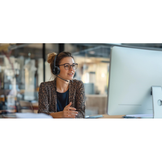 Profesionálna náhlavná súprava pre online komunikáciu a každodenné pracovné využitie.