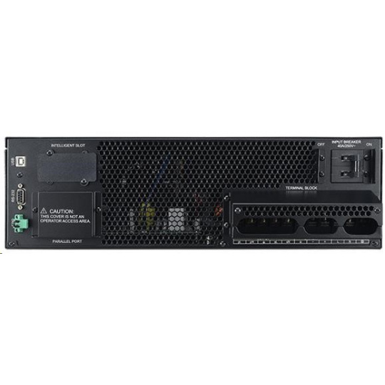 | Obsah dodávky | UPS + batériový modul; kryt Vstup/Výstup Termínal bloku ; používateľská príručka; telefónny kábel; PowerPanel®Business Edition softvérové CD; USB kábel typ A+B; lišty pre uchytenie v racku; konzola pre montáž do racku (2+2); spojovací plech (2); lyžiny (2+2); sériový kábel; napájací kábel; montážna súprava |