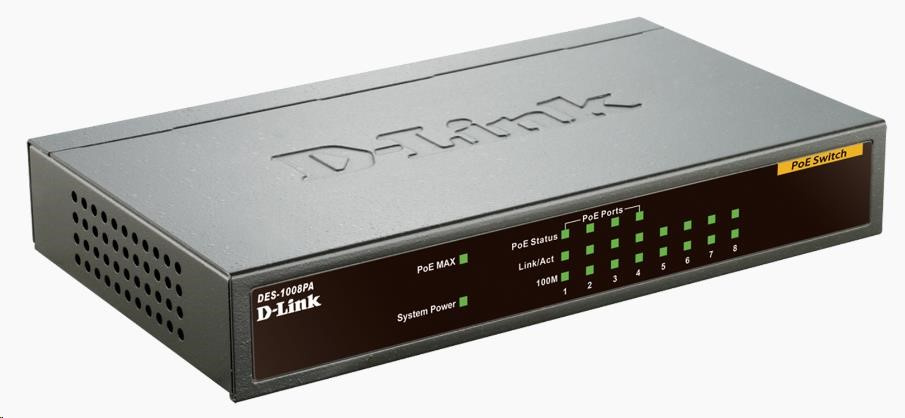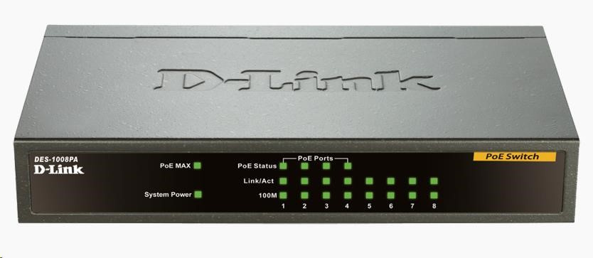 D-Link DES-1008PA 8-portový 10/100 stolový prepínač so 4 portami PoE