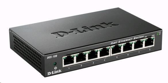 D-Link DES-108 8-portový 10/100 stolný prepínač s kovovým puzdrom