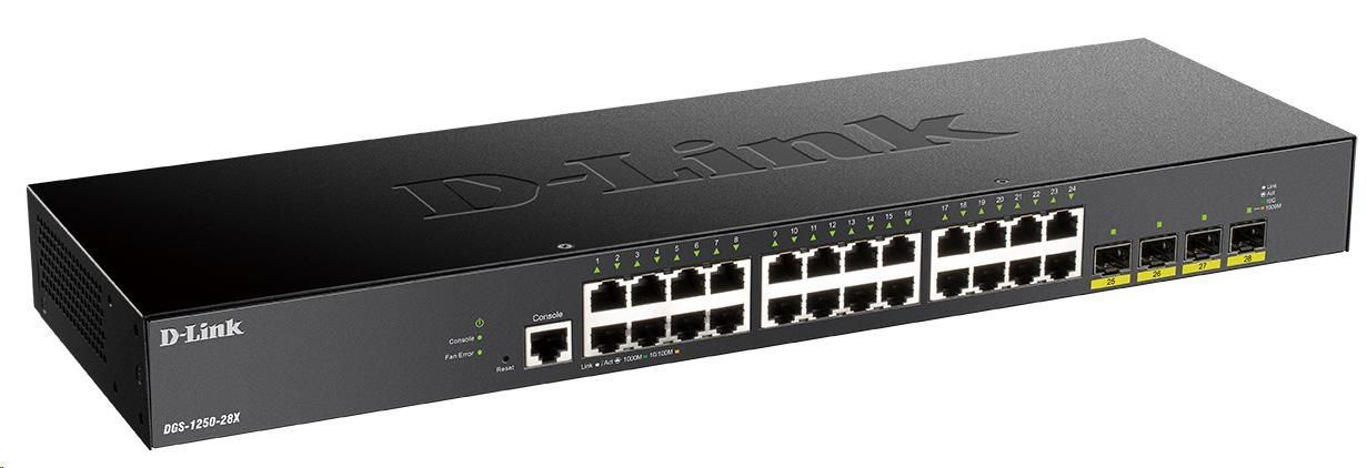 D-Link DGS-1250-28X 28-portový gigabitový inteligentný prepínač, 24x GbE, 4x SFP+