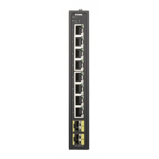 D-Link DIS-100G-10S Priemyselný gigabitový switch bez správy, 8x GbE, 2x SFP, DIN