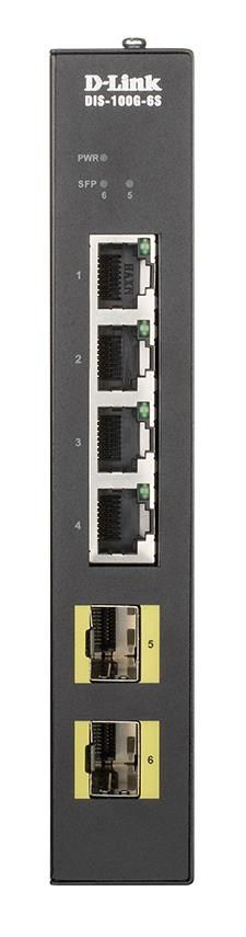D-Link DIS-100G-6S Priemyselný gigabitový switch bez správy, 4x GbE, 2x SFP, DIN