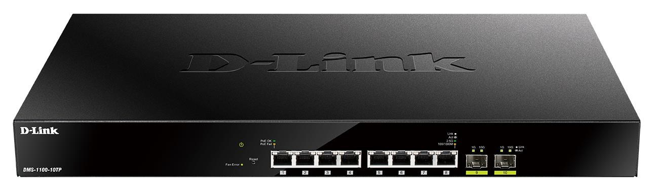D-Link DMS-1100-10TP 10portový multi-gigabitový PoE inteligentný riadený prepínač, 8x 2,5G PoE, 2x SFP+