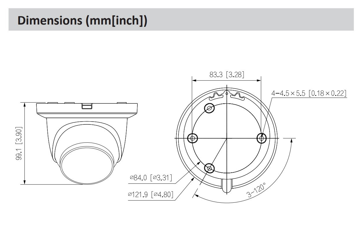 Dahua IPC-HDW5842TM-ASE-0280B-S3, IP kamera, 8Mpx, Eyeball, 1/1.8" CMOS, objektiv 2.8 mm, IR