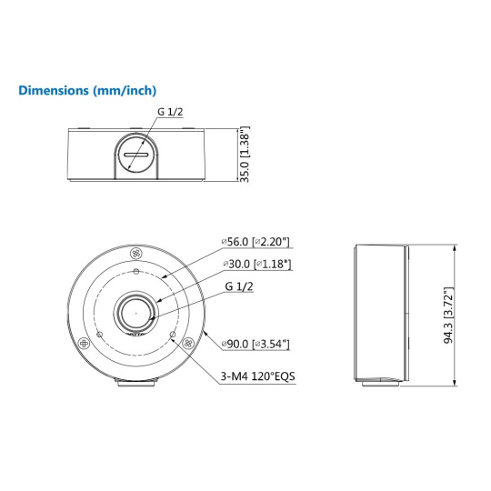 Prídavný lem pre Dahua kamery FW181G, HAC-HFW [SP], IPC-HFW [SP], HAC-HFW [RP], kompatibilné príslušenstvo PFA150, PFA151, rozmery O 90 x 36,1 mm, hmotnosť 0,24 kg