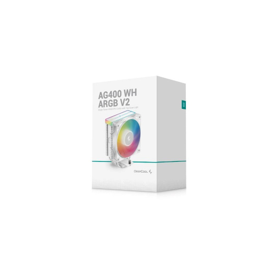 DeepCool AG400 WH ARGB V2 je celobiely jednovedžový chladič CPU zameraný na vysokú výkonnostnú účinnosť, ktorý sa pýši štyrmi tepelnými trubicami zabalenými v hustej veži chladiča pre optimálny odvod tepla a spárovanými s jemne vyladeným 120mm ARGB PWM ventilátorom pre výkonné chladenie.