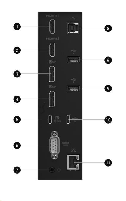| HDMI 1 ? HDMI 2 ? DisplayPort (vstup) ? DisplayPort (výstup) ? USB 3.2 Gen1 Type-C upstream (Alt mode s DP 1.4, až 90W PD) ? RS232 ? Audio line-out ? USB 3.2 Gen1 Type-B (5Gbps) upstream ? USB 3.2 Gen1 Type-A (5Gbps) downstream (2) ? USB 3.2 Gen1 Type-C (5Gbps) downstream (až 15W PD) ? RJ45