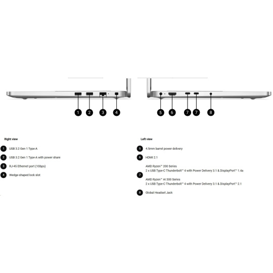 | 3-cell, 55 Wh, ExpressCharge™ Capable, ExpressCharge™ Boost Capable, 65W AC adapter, USB Type-C |
