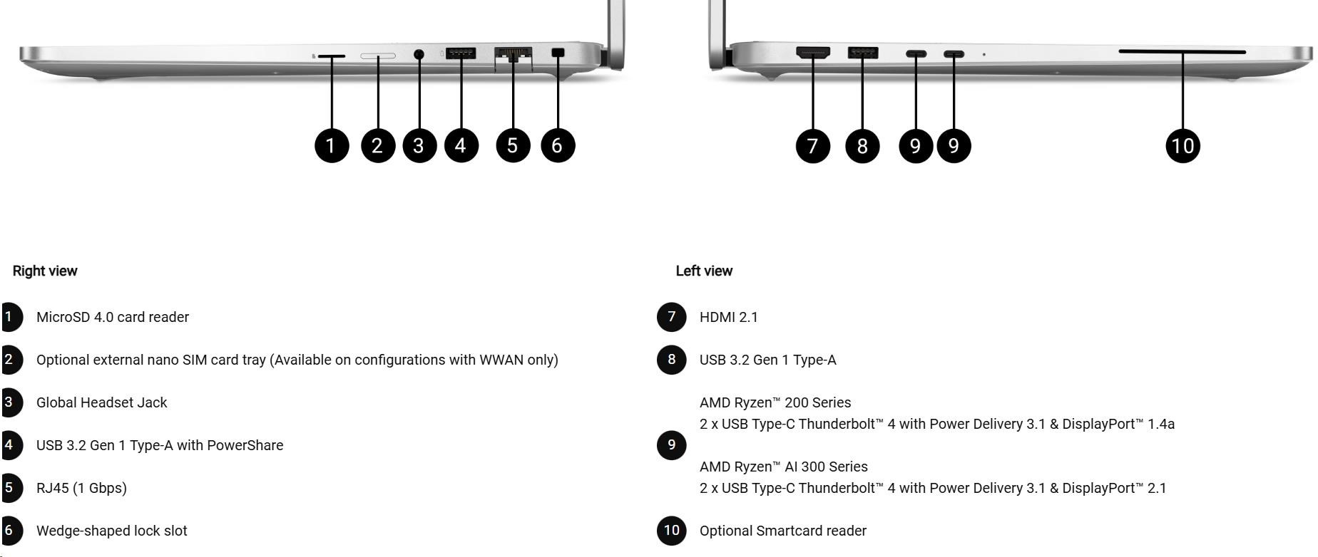 • AMD Ryzen™ 200 Series 2 x USB Type-C Thunderbolt™ 4 with Power Delivery 3.1 & DisplayPort™ 1.4a AMD Ryzen™ AI 300 Series 2 x USB Type-C Thunderbolt™ 4 with Power Delivery 3.1 & DisplayPort™ 2.1