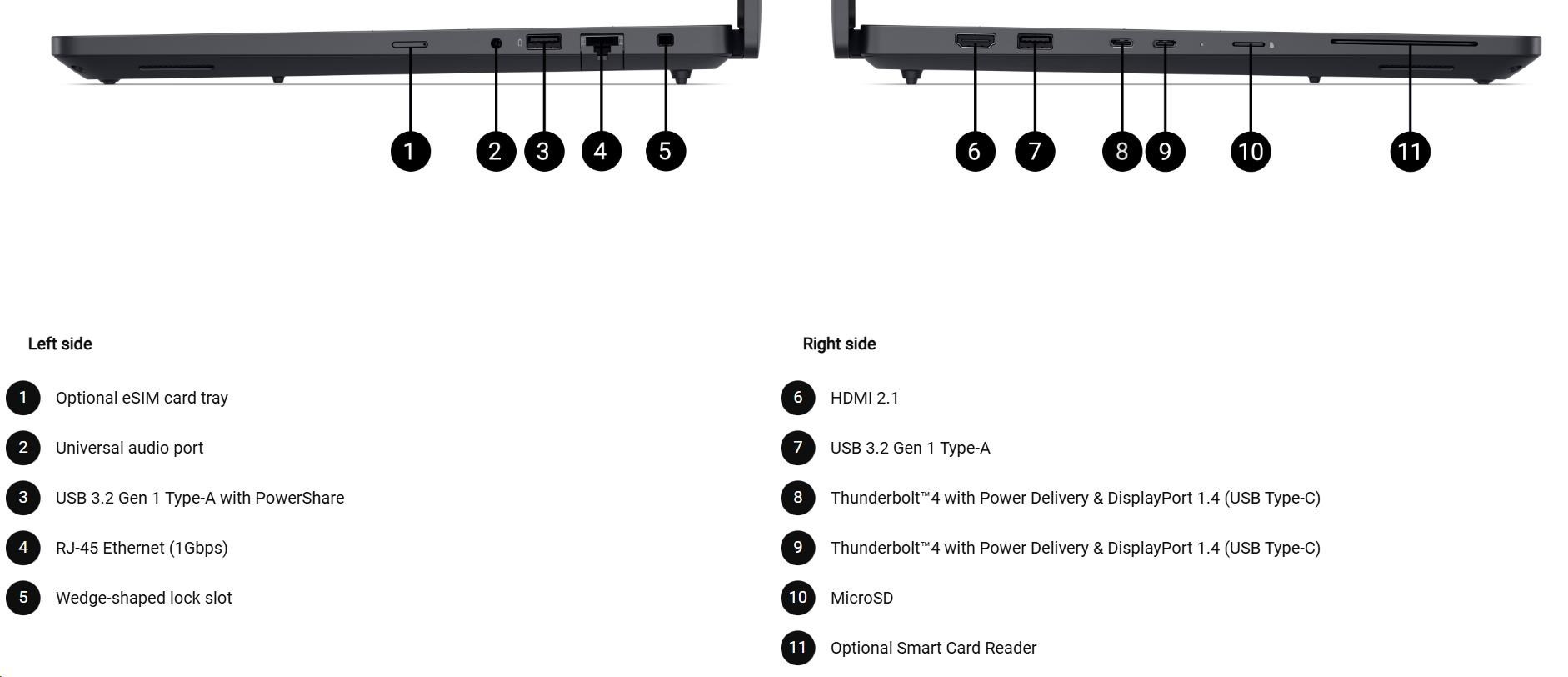 | 4 cell, 64Whr, standard battery, 100W AC adapter, USB Type C |