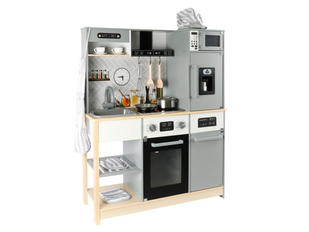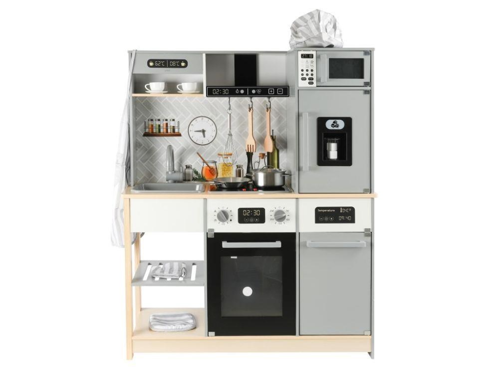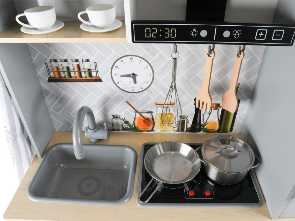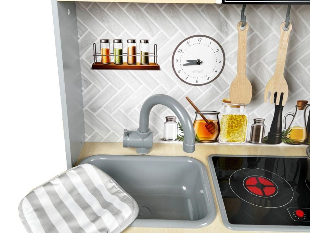 Detská kuchynka vybavená modernými spotrebičmi, doplnená o bohaté príslušenstvo a textilný kuchársky set ZDARMA, očarí dievčatá aj chlapcov. Drevená kuchynka v škandinávskom štýle je vhodná do každej miestnosti. Vďaka tejto krásnej edukačnej hračke si deti vyskúšajú varenie, pečenie, chystanie jedál, umývanie riadu a ďalšie činnosti bezpečným detským spôsobom. Pri hre v modernej kuchynke deti zdokonalia svoje zručnosti a zároveň si užijú veľa zábavy.