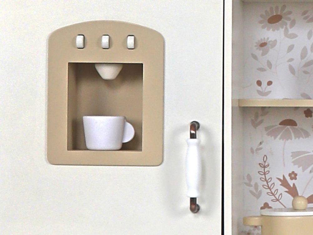 Dětská dřevěná kuchyňka se zvuky - krémová s květy