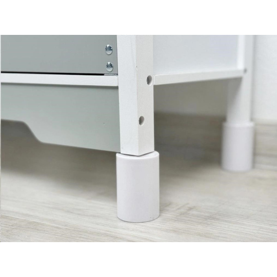Drevená detská kuchynka v neutrálnej farebnej kombinácii bielej a šedej farby, doplnená bohatým príslušenstvom, je miestom, kde vaše dieťa môže vypustiť uzdu svojej fantázii a kreativite. Detská kuchynka so spotrebičmi aj riadom je edukatívnou hračkou, ktorá umožní deťom vyskúšať si varenie, pečenie a ostatné dospelácke činnosti bezpečným detským spôsobom. Vďaka pridavným nohám (nadstavcom) môžete kuchynku zdvihnúť o 6 cm.