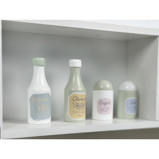 Štýlová drevená detská kuchynka umožní malým kuchárkam a kuchárom vrhnúť sa do varenia a pečenia, prípravy pokrmov a do kuchynských prác priamo vo svojej vlastnej kuchyni. V drevenej kuchynke v krásnom neutrálom farebnom prevedení môžu deti vypustiť uzdu svojej fantázii a premeniť sa na skutočných kulinárskych majstrov. K ruke im budú zabudované spotrebiče aj riad, s ktorým pôjde varenie aj pečenie ako po masle. V kuchynke nechýba pečiaca rúra, mikrovlnná rúra, sporák so 2 platňami, drez na špinavé riady ani hodiny. Pre prípravu chutných pokrmov je detská kuchynka dovybavená rôznymi koreninami. Táto edukatívna hračka umožní deťom vyskúšať si dospelácke činnosti bezpečným detským spôsobom. K náteru sa používajú vodou riediteľné farby, vhodné a bezpečné pre deti. Vďaka pridavným (nasadzovacím) nohám porastie kuchynka s vaším dieťaťom, po pridaní nôh sa celá (teda aj pracovná doska) zdvihne o 6 cm.