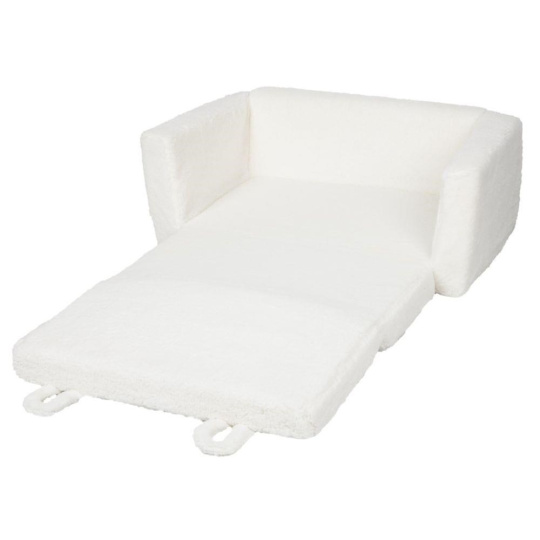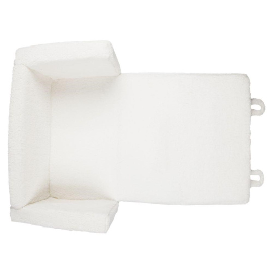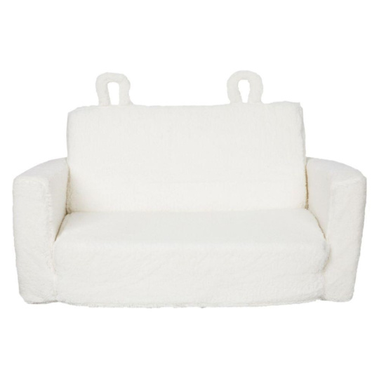 Dvojmiestne detské kreslo (pohovka) s hebkým béžovým poťahom poskytne deťom pohodlie pri hre aj oddychu. Veľké detské kreslo je rozkladacie a ľahko ho z pohovky premeníte na lehátko (matrac). Do praktickej bočnej kapsy si deti môžu uložiť obľúbenú knihu, časopis alebo drobné hračky. Roztomilé ouška uľahčujú manipuláciu a kreslu dávajú podobu veľkého medvedíka. Poťah možno z detského kresla odobrať.