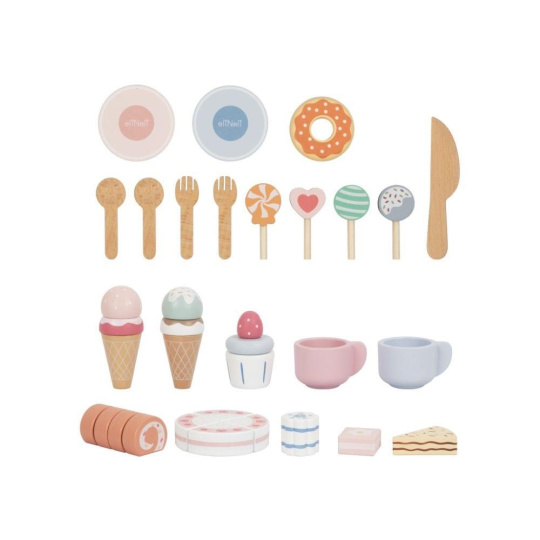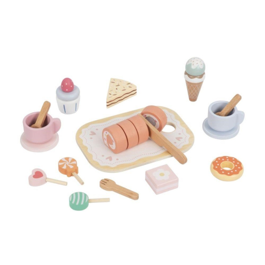 Čajový servis spolu s krájecím dortom a ďalšími chutne vyzerajúcimi dobrôtkami, všetko uložené v praktickom boxe, poteší každé dieťa. S boxom 3v1 je usporiadanie čajového dýchánku alebo posedenia pri káve hračkou a veľkou zábavou. Obsah boxu je skvelým doplnkom k detskej kuchynke alebo obchodíku.