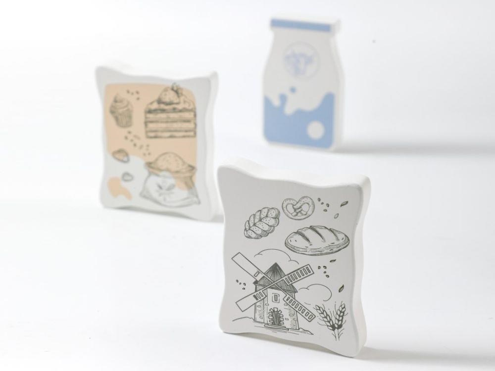 Drevený detský mixér v modernej farebnej kombinácii, v sete s dreveným príslušenstvom, je edukatívna hračka, ktorá umožní deťom vyskúšať si prácu s kuchynským robotom bezpečným detským spôsobom. Otáčanie páčky v hornej časti mixéra uvedie mixér do chodu a tým dodáva hračke reálny nádych. Detský mixér s miskou, drevenými ingredienciami a potravinami, krájecim vajíčkom a výmennými nadstavcami nesmie chýbať v žiadnej detskej kuchynke.