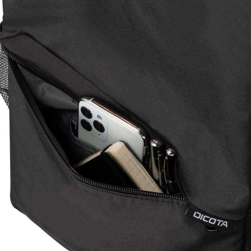 Upevňovací pás zaisťuje bezpečné uchytenie bez vyklznutia. Hlavná priehradka s objemom 15 litrov ponúka ďalší priestor na dokumenty a osobné veci. Fľašu na vodu a dáždnik možno uložiť do bočných vreciek a ušetrí sa tak miesto. Mobilné príslušenstvo, ako sú smartfóny, vizitky, perá a pod., sú vždy po ruke v priehradke na zips na prednej strane. Pohodlné ramenné popruhy a praktická rúčka poskytujú príjemný komfort pri nosení. Celkovo ide o funkčné riešenie pre spoľahlivú ochranu pri profesionálnom aj súkromnom nosení. DICOTA zdôrazňuje odolnosť rodiny ONE predĺženou petročnou zárukou.