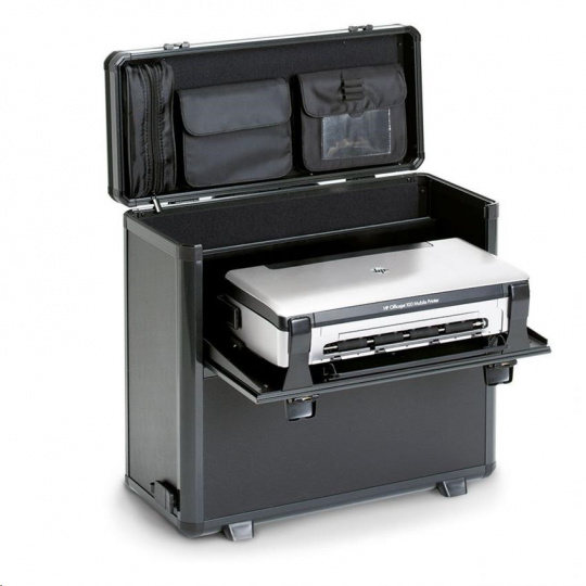Data Box XL Trolley je robustný kufor s odnímateľným systémom vozíkov pre notebooky do 15.6". Praktické a mimoriadne robustné hliníkové puzdro s výklopným vreckom na tlačiareň umožňuje používateľovi profesionálnu prácu na cestách a zaručuje bezpečnú prepravu notebooku a tlačiarne! Nový výsuvný jazyk na papier zachytí vytlačené dokumenty až do veľkosti DIN A4. Špeciálny princíp "Floor-to-desk", ktorý vyvinula spoločnosť DICOTA, znamená, že tlačiareň a sieťový adaptér zostávajú počas používania kompletne zapojené v puzdre. Notebook sa dá voľne používať na stole. Vozík Data Box XL je tiež uzamykateľný; dodávajú sa dva kľúče. Údaje sa bežne prenášajú pomocou káblov tlačiarne alebo cez Bluetooth. Tlačiareň sa ovláda a batéria sa nabíja prostredníctvom konektora 220/230 V pre nízkoenergetické zariadenie na vonkajšom plášti skrine. Konektor zariadenia s nízkou teplotou môže byť pri preprave zakrytý gumovou krytkou. Odnímateľný systém vozíkov zabezpečuje mimoriadne pohodlnú prepravu vašej mobilnej kancelárie. Ak by ste v určitom okamihu funkciu vozíka nepotrebovali, systém vozíka sa dá veľmi jednoducho odstrániť rýchlym pohybom. Vozík Data Box XL je vhodný pre všetky obľúbené notebooky do 15.6" a pre mobilnú tlačiareň HP OJ 250 - s podporou alebo bez podpory prenosnej súpravy Canon. Ďalšie tlačiarne sú k dispozícii na požiadanie. Upevnenie tlačiarne pre mobilnú tlačiareň HP OJ 250 integrované v skrinke kufra, v závislosti od modelu. Pri výmene tlačiarne možno tento držiak tlačiarne vymeniť za iný model (k dispozícii ako voliteľné príslušenstvo) jednoduchým uvoľnením štyroch imbusových skrutiek Polstrované vrecko na notebook Obzvlášť robustné puzdro Princíp "od podlahy k stolu" Vnútorná kabeláž Uzamykateľná schránka, dva kľúče v balení Konektor pre nízkoenergetické zariadenie 220 V na vonkajšom plášti puzdra Prenos dát bežnými prostriedkami alebo prostredníctvom Bluetooth Odnímateľný systém vozíka Presné prispôsobenie pre HP OJ 250 Viac informácií Viac informácií Číslo položky D31846 Farba čierna Objem v litroch 0 Materiál Hliník / Con-Pearl® Záruka 24 mesiacov EAN 7640186419796 Max. Rozmery zariadenia (mm) 410 x 310 x 60 mm 16.14 x 12.2 x 2.36 palcov Rozmery výrobku (mm) 455 x 445 x 280 mm 17.91 x 17.52 x 11.02 palcov Hmotnosť 7.4 kg / 16.28 libier..