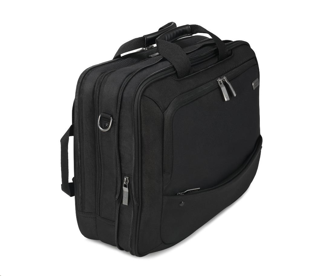- Priestranná hlavná priehradka s úložným priestorom na dokumenty a polstrovaným zasúvacím vreckom na tablet do 10.5" (mäkký nylexový materiál)