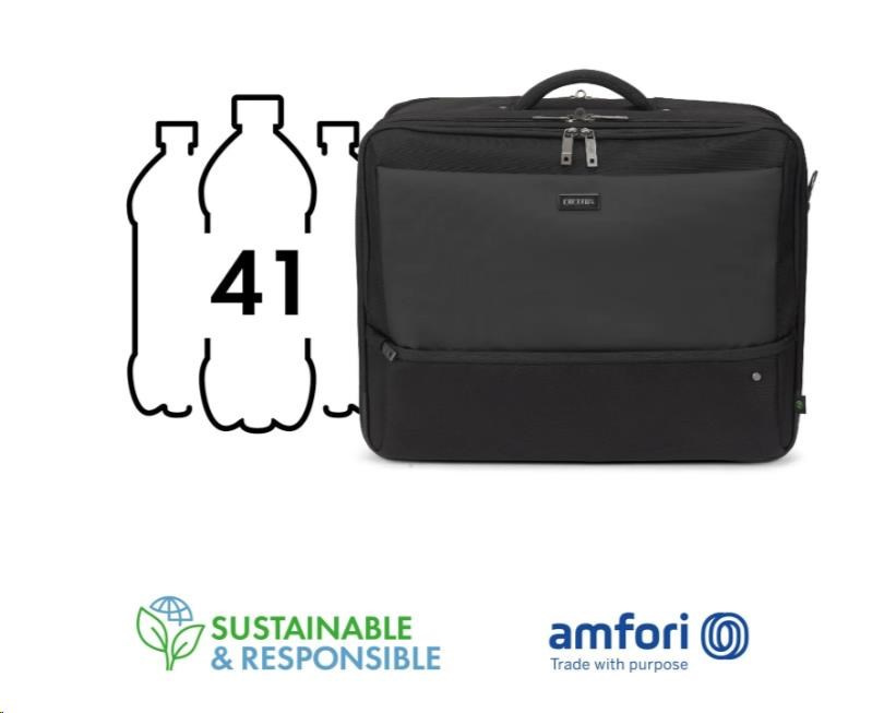 MULTI TWIN FIVE je bezpečný, funkčný a ekologický spoločník na každodenné pracovné potreby. Uzamykateľná priehradka na notebook s penou HDF poskytuje robustnú ochranu, zatiaľ čo vnútorná priehradka na tablet zabezpečuje, že menšie zariadenia sú rovnako bezpečné. V vyhradenej zadnej priehradke sú usporiadané dokumenty, zatiaľ čo predná časť ponúka štruktúrované kapsy na príslušenstvo. Táto taška, premyslene navrhnutá pre pohodlie, je navyše vyrobená zo 41 recyklovaných PET fliaš, čo spája udržateľnosť s každodennou praktickosťou.