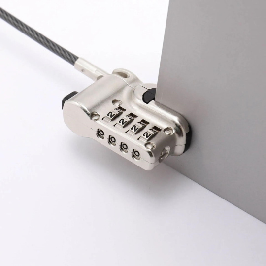 Zámok je možné presne a ľahko pripevniť k stojanu zariadenia Microsoft Surface Pro a Surface Go. Bez kľúča a bez kompromisov v zabezpečení: ľahko si nastavte individuálny štvorciferný číselný kód z 10 000 možných kombinácií. Vďaka funkcii „push-to-lock“ je možné zámok tiež zabezpečiť. Opláštené viacžilové oceľové lanko je dlhé 2 m a má priemer 4,4 mm. Funkčný pásik na suchý zips umožňuje zrolovať kábel pre kompaktné skladovanie a prepravu.