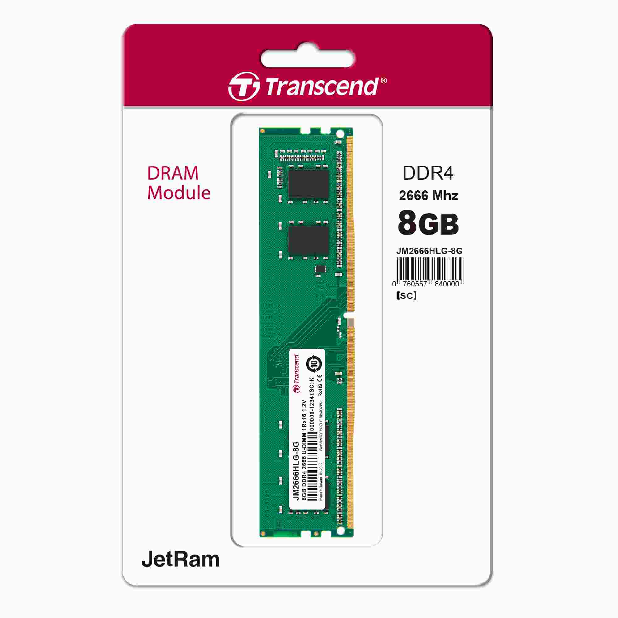 DDR4 8GB 2666MHz TRANSCEND 1Rx16 1Gx16 CL19 1.2V