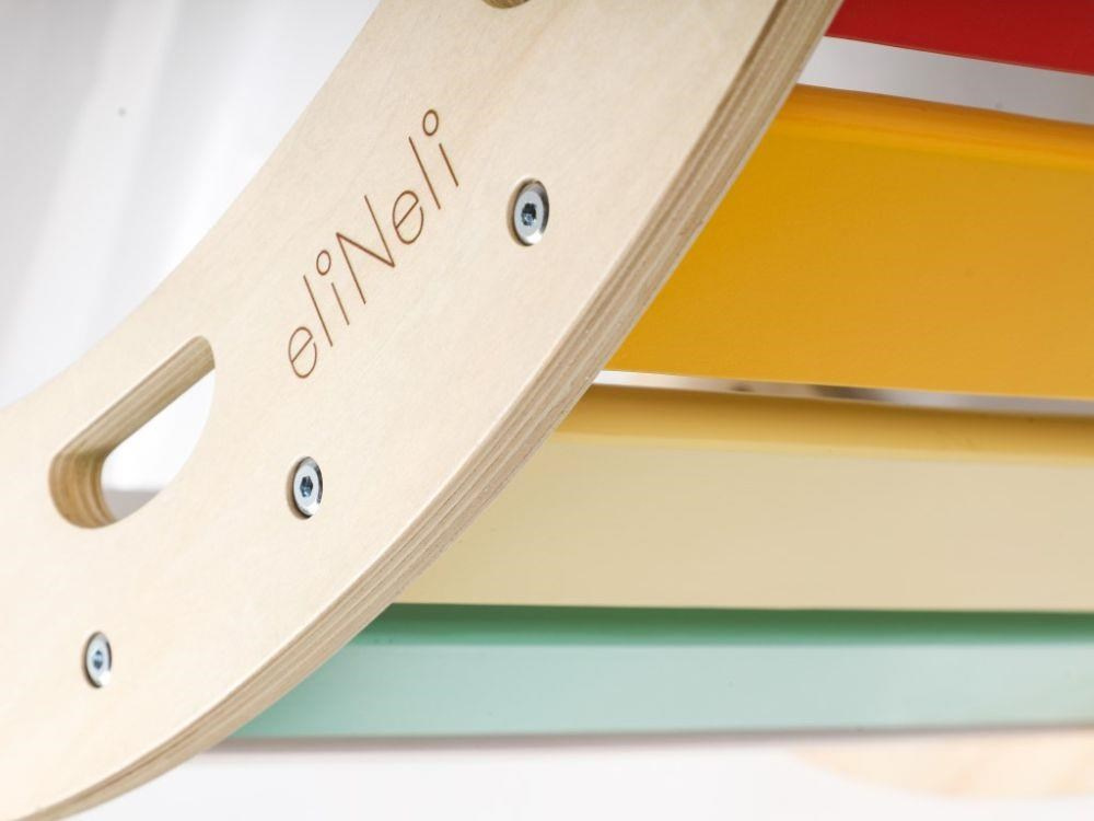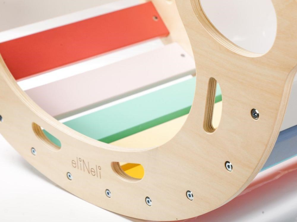 Vylepšená multifunkčná drevená hojdačka 5v1, s doskami v sviežich fresh farbách, je zábavnou hračkou pre deti, ktorú využijú pri pohybových aktivitách aj pri hre. Montessori hojdačka umožní deťom príjemne sa pohupovať, skvele poslúži ako lezenie, skluzavka, skrýša, most, stolička alebo predajný pultík pri hre na obchod. Hojdačka prirodzeným spôsobom rozvíja motorické zručnosti a je vhodná pre deti už od 1 roka.