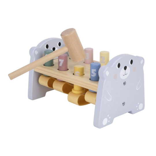 Zatláčačka pre deti je klasická drevená hračka, ktorá poteší každé dieťa. Drevená zatláčačka v krásnych farbách, s roztomilým medvídkom, s očíslovanými valčekmi a malou vychytávkou rozvíja detské zručnosti, naučí deti spoznávať farbičky aj číslice.