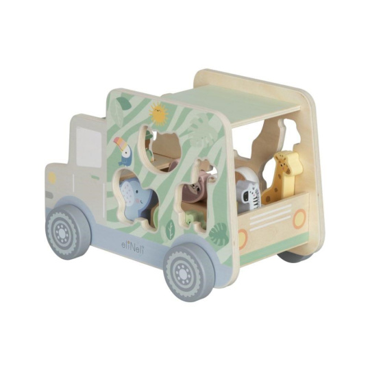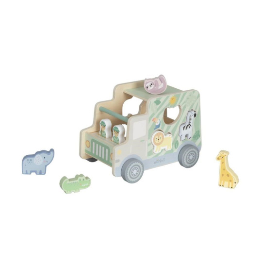Drevené autíčko 2v1 ponúka množstvo možností na hranie. Veľké autíčko je skvelou hračkou samo o sebe, ale pretože ide o multifunkčnú detskú hračku, je zároveň aj originálnou vkladačkou s drevenými vkladacími dielikmi v podobe zvieratiek zo ZOO. Deti pri nakladaní zvieratiek a pri hre s autíčkom zdokonaľujú hrubú motoriku, koordináciu očí a rúk, logické myslenie.