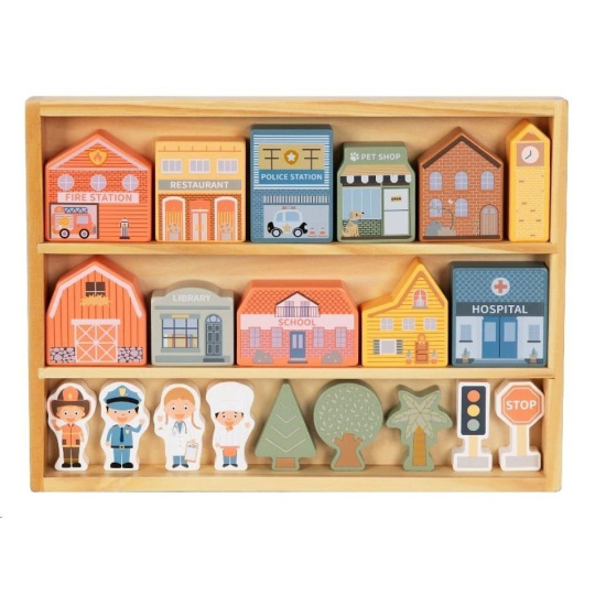 - Obsah balenia: 20 drevených kociek (domčeky, postavy, stromy a dopravné značky).