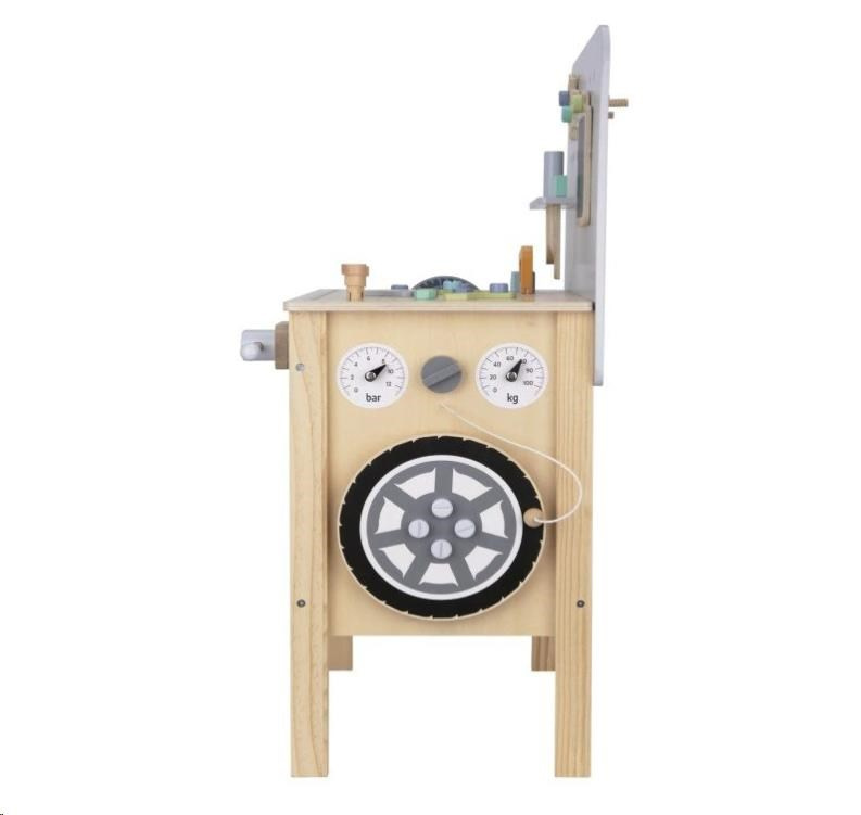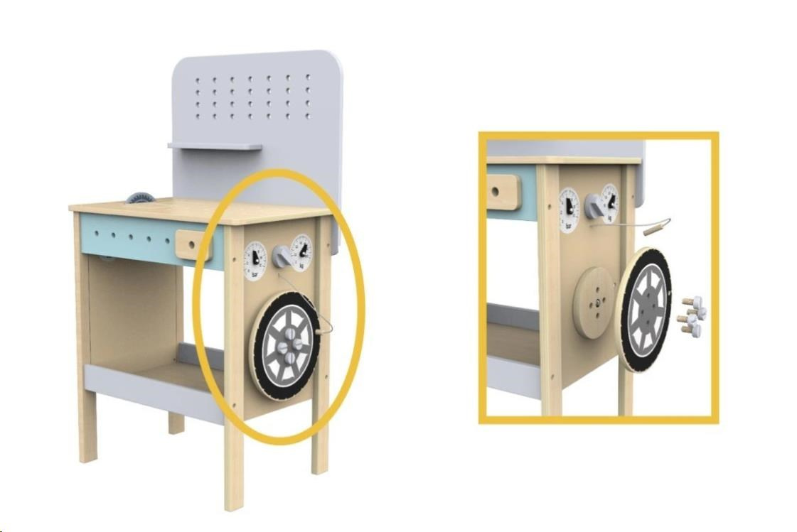 - Kompresor - tento zábavný doplnok umožní deťom vžiť sa do role automechanika, nasadiť kolo na ponk, hrať sa na to, že kolo dofukuje a znovu nasadiť kolo na ponk.